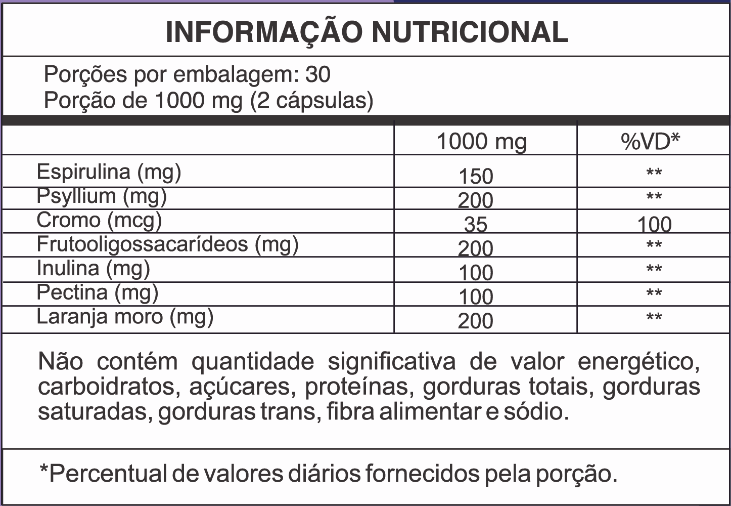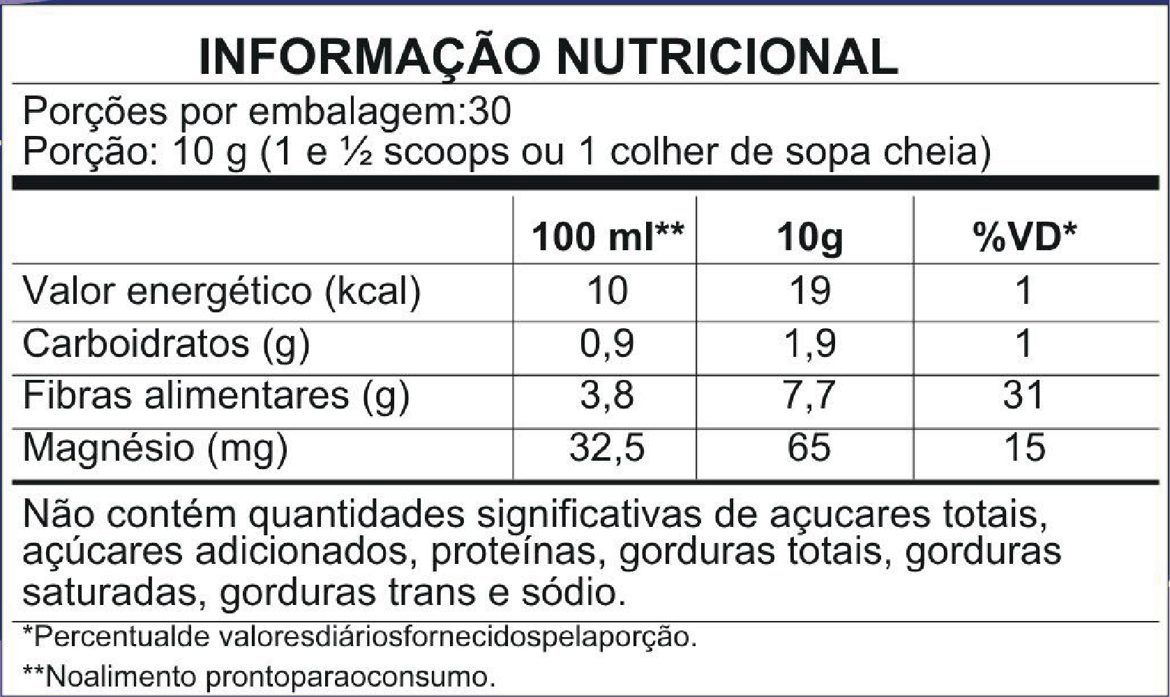 Fibra solúvel que aumenta a saciedade e melhora o trânsito intestinal. Mais saciedade, menos vontade de comer, deixa as fezes mais macias e regulares e o intestino funciona com mais facilidade.